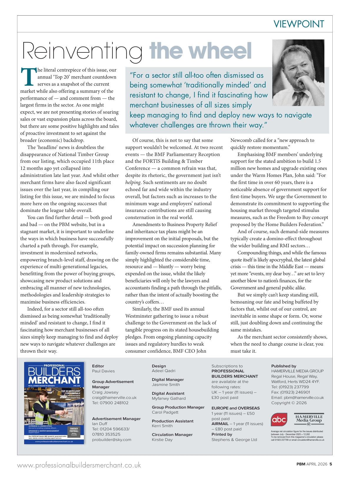 In the Viewpoint column of PBM’s April 2026 issue, editor Paul Davies ruminates on the backdrop to this year’s ‘Top 20’ merchant countdown as world events yet again look set to impact on the industry…