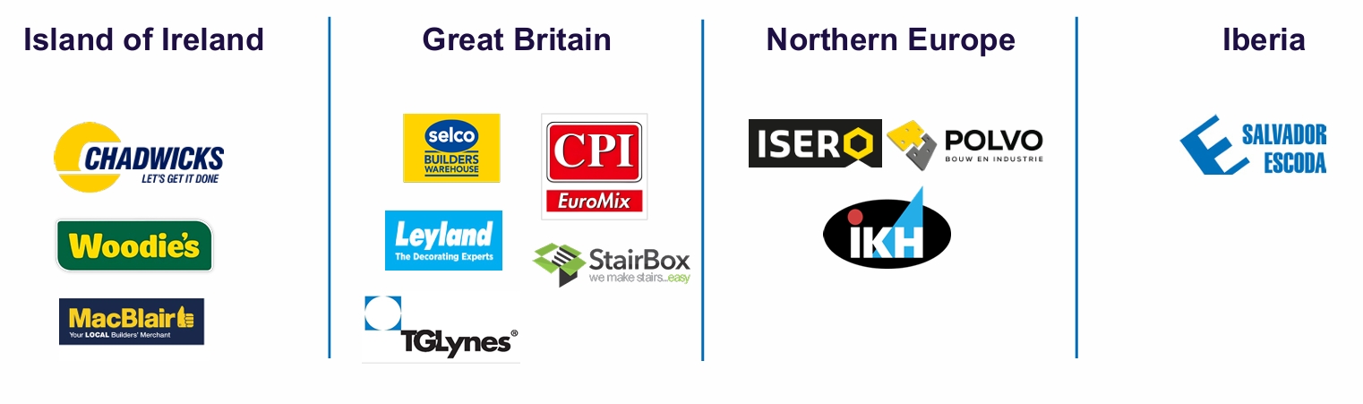 Island of Ireland — comprising Chadwicks, Woodie’s, MacBlair and MFP (divested 31 May 2025); Great Britain — comprising Selco, Leyland SDM, TG Lynes, CPI EuroMix and StairBox; Northern Europe — comprising Isero and Polvo in the Netherlands and IKH in Finland; Iberia — comprising Salvador Escoda in Spain the distribution of construction related products.